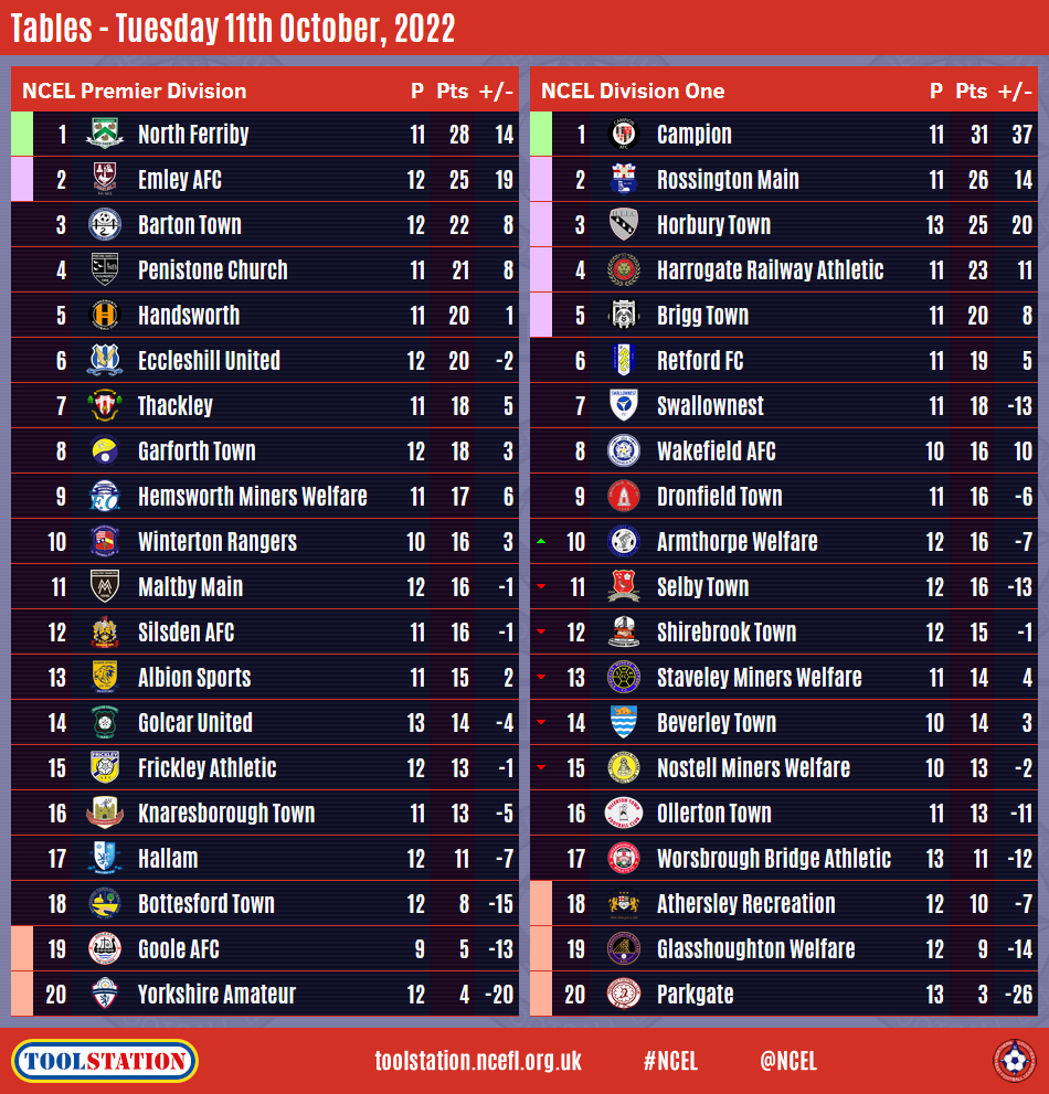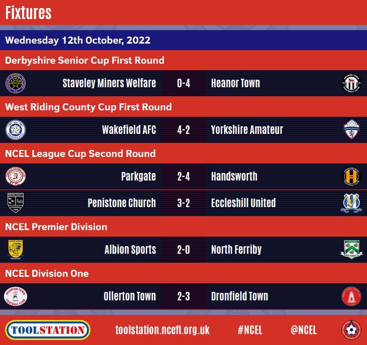 There was a mixture of Toolstation NCEL League Cup, Premier Division, Division One and County Cup matches in midweek with 21 of our sides in action.Four Premier Division teams made it through to the Third Round of the League Cup with