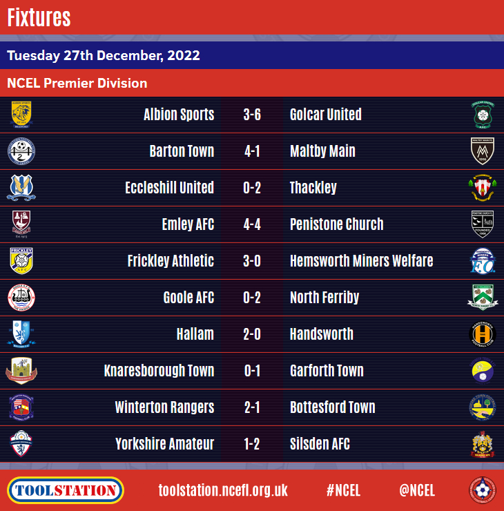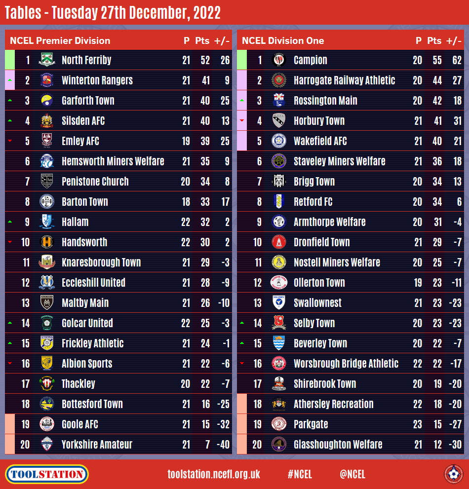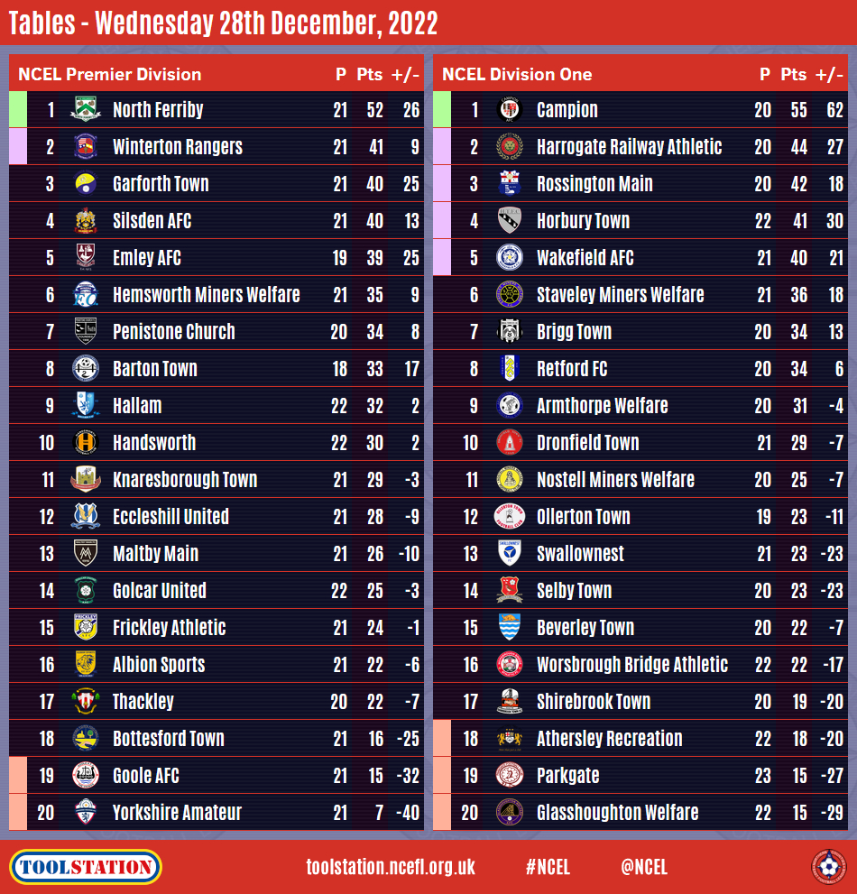 This midweek saw a full programme of Toolstation NCEL matches with leaders North Ferriby and Campion both carrying on from where they left off before an impromptu winter break for most sides due to bad weather and Christmas.Ferriby were one of many Premier Division teams who were playing their first match in 24 days as they continued their winning streak, making it seven victories in a row as they beat hosts