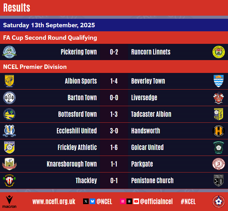 Pickering Town's run in the Emirates FA Cup, and the Macron NCEL's participation in this season's competition, came to an end on Saturday as the Pikes were beaten 2-0 at home by Runcorn Linnets.The Second Round Qualifying tie at Mill Lane was broadcast live on BBC iPlayer but Tony Hackworth's side could not provide an upset in front of the cameras and a crowd of 1,206.
