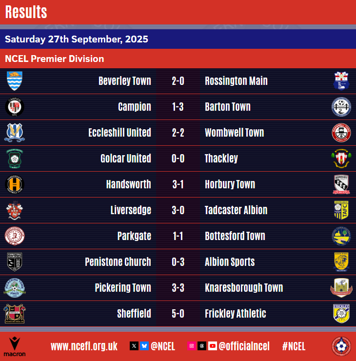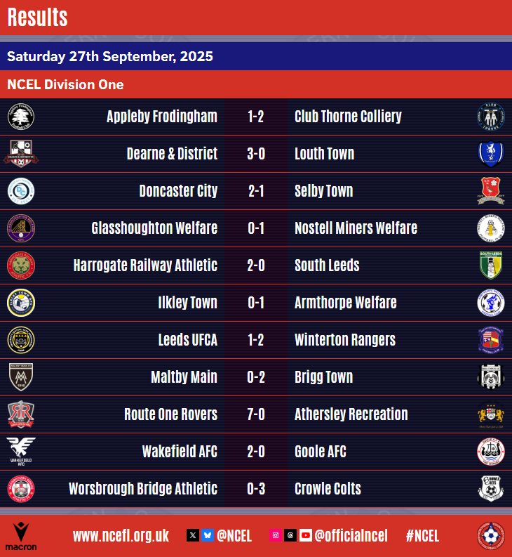 Leeds UFCA 2-1, and Mason Ellender and Adam Drury were the scorers for Brigg as they won 2-0 at