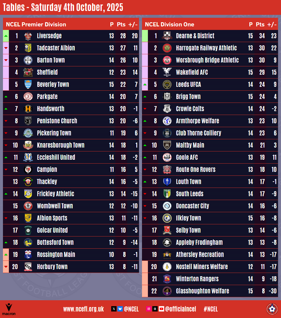 Thackley means they fall to ninth whilst their opponents keep themselves in thirteenth spot.