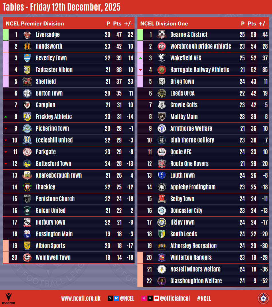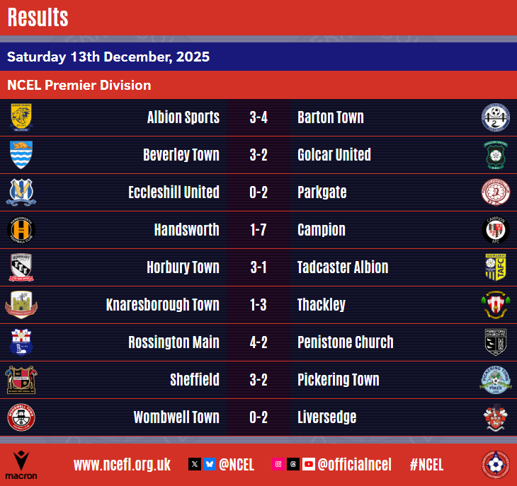 That leaves Wombwell seven points adrift now at the bottom with Albion Sports three points away from safety in the relegation zone.
