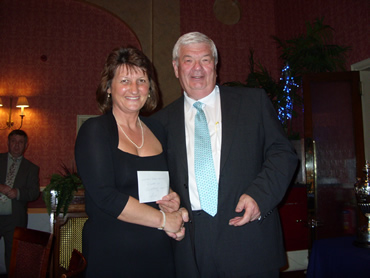 Pontefract Collieries Secretary Jackie Seed gets their Wilkinson Sword Trophy runners-up cheque from Management Board member, Bruce Bickerdike.