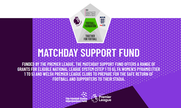 Toolstation NCEL clubs can apply for up to £4,000 in grants from the Matchday Support Fund, launched by the Premier League to help teams prepare for the restart of football and safe return of supporters to their stadia.Toolstation NCEL player registrations