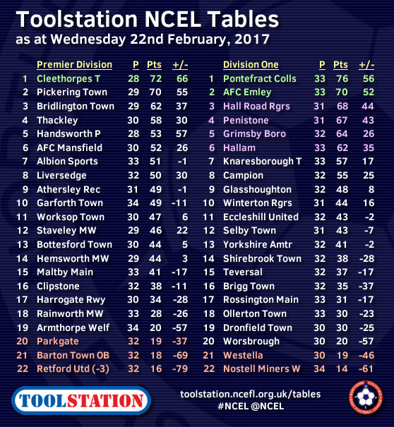 A 2-0 home win for Pontefract Collieries over sixth placed Hallam in midweek means that Craig Parry's side are now six points clear at the top of Toolstation NCEL Division One.Christopher Jackson broke the deadlock for the Colls in first half stoppage time before Christopher Wood doubled their advantage and confirmed his side's seventh straight victory three minutes from the end.