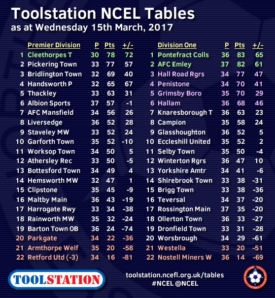 The two second-placed sides in the Toolstation NCEL - Pickering Town and AFC Emley - both kept the pressure on the leaders of the Premier Division and Division One, respectively, with wins in midweek.A second-half brace from Ryan Blott secured the Pikes a 2-1 victory at