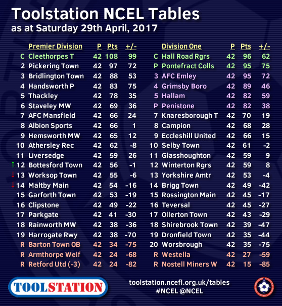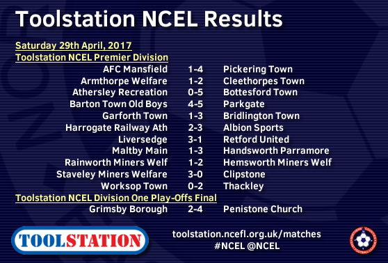 Penistone Church have joined Division One champions Hall Road Rangers and runners-up Pontefract Collieries in gaining promotion to the Toolstation NCEL Premier Division after their play-off win over Grimsby Borough on Saturday.It was fourth versus sixth in the final that was played at Borough's home, the Bradley Football Development Centre, as Penistone - who had beaten third-placed AFC Emley in the midweek semi-finals - beat their higher-ranked hosts 4-2 to move up into the top flight.
