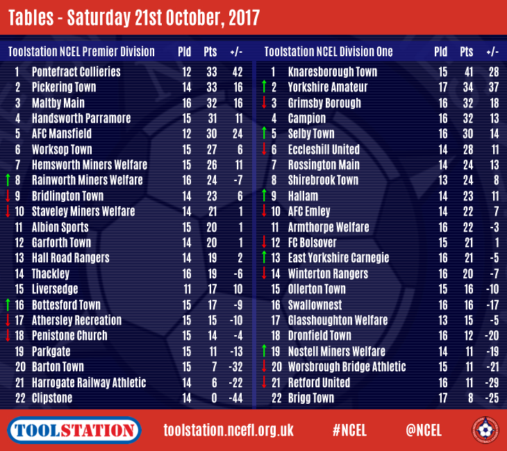 The remaining three matches all ended in draws with a 1-1 scoreline for bottom side Brigg Town at Glasshoughton Welfare and for Nostell Miners Welfare's home clash with Swallownest.
