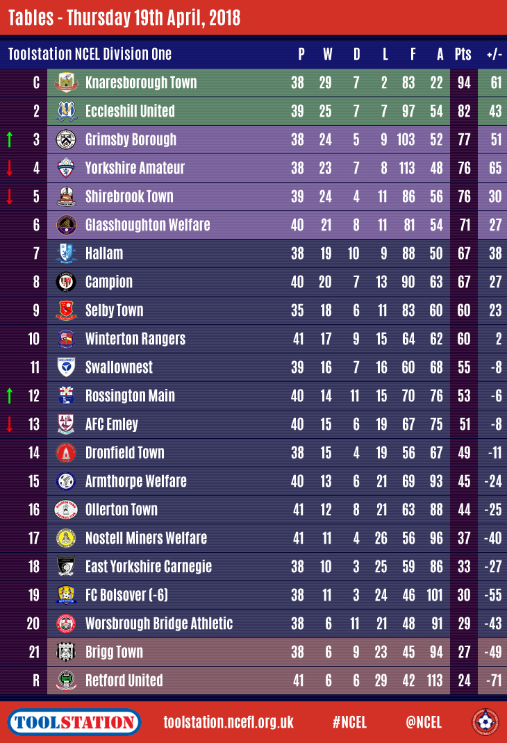 At the top end of the table, the chase for who joins Knaresborough in automatic promotion continues to hot up with Grimsby Borough climbing up to third to move within five points of second-placed Eccleshill United courtesy of a dramatic 3-2 victory at Selby Town.