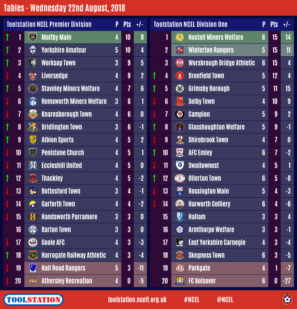 Hemsworth Miners Welfare to climb up into fifth spot in the early table that now only has one team without a point.