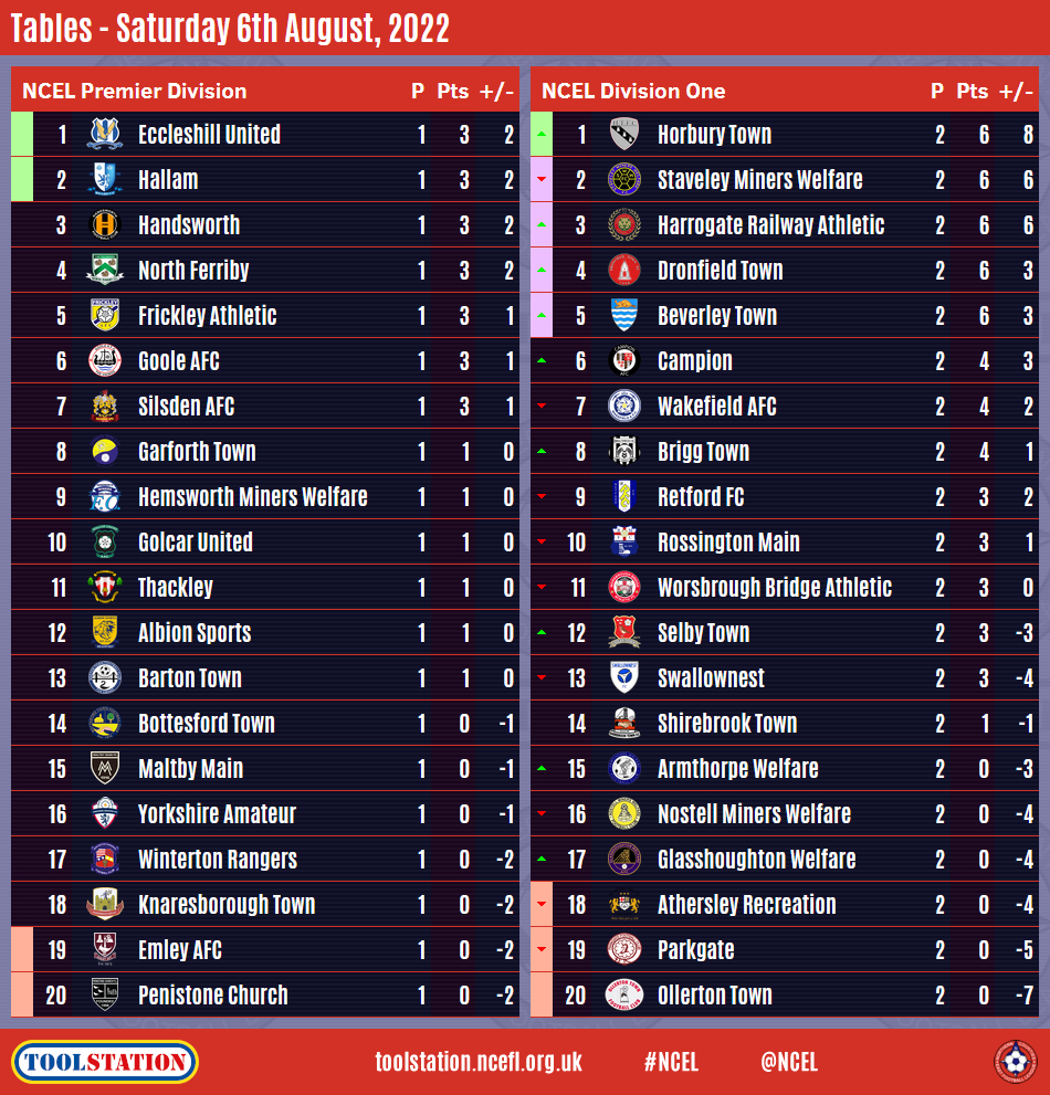 Meanwhile, the second round of Division One matches took place with two games in midweek and the remaining eight played on Saturday.