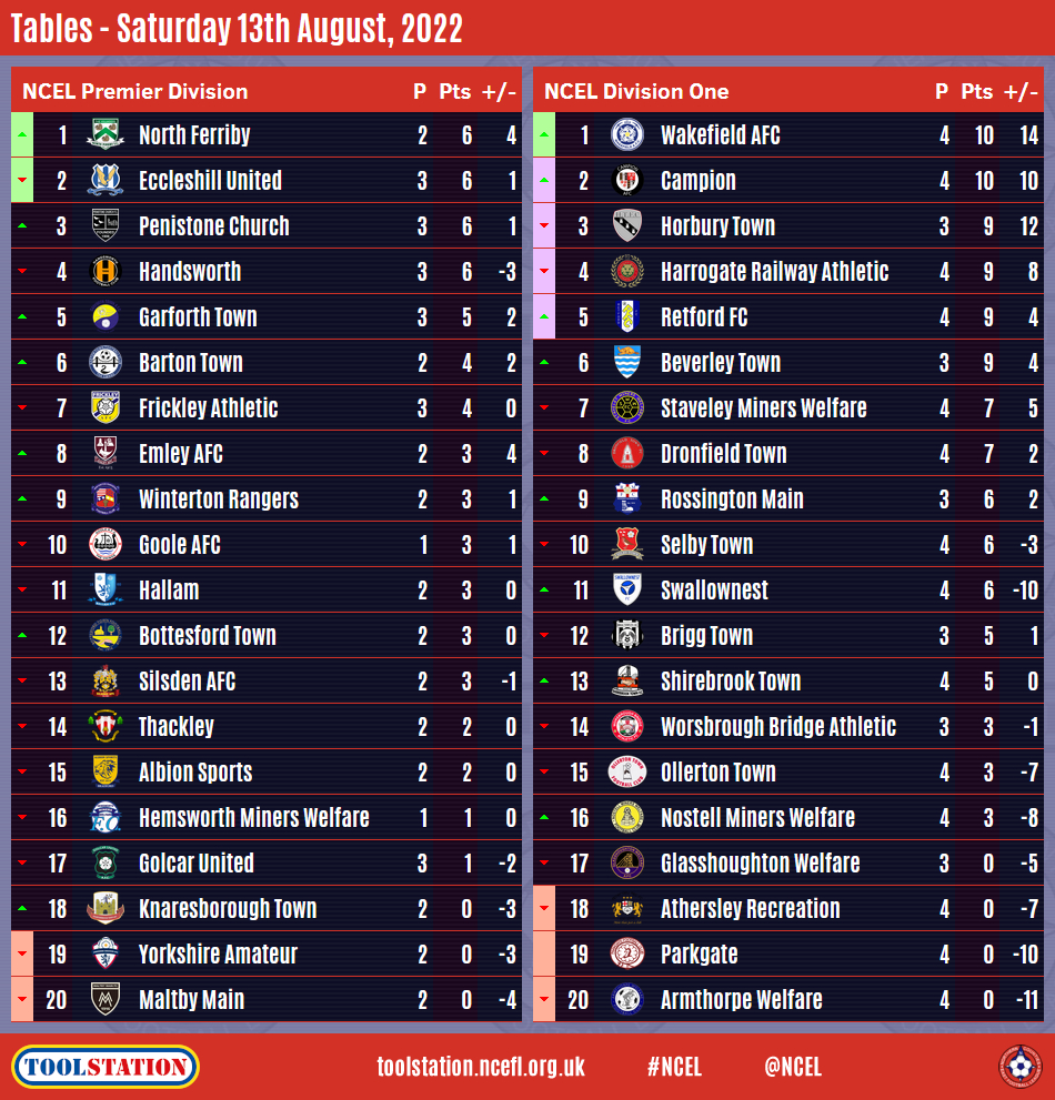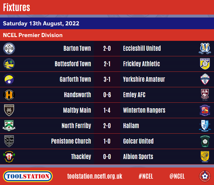 North Ferriby beat fellow promoted side Hallam to move to the top of the early Toolstation NCEL Premier Division table on a sweltering Saturday afternoon.Temperatures were in the low thirties celsius across the sixteen matches that were played, eight in each division, and they contributed to a lower goal tally than usual across the league as everyone adapted to the scorching conditions.
