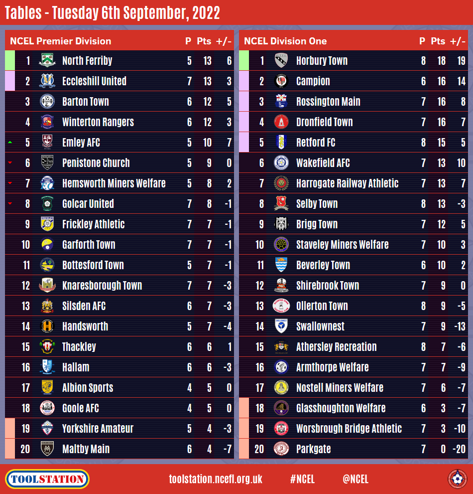 NCEL Division One | P | Pts | +/- | ||