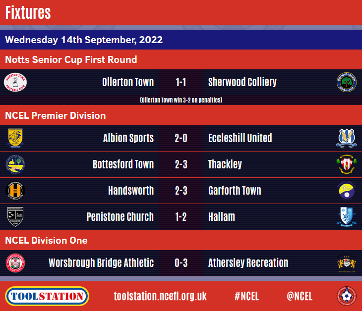 Both Notts Senior Cup First Round ties involving Toolstation NCEL sides, meanwhile, were decided by a penalty shoot-out.