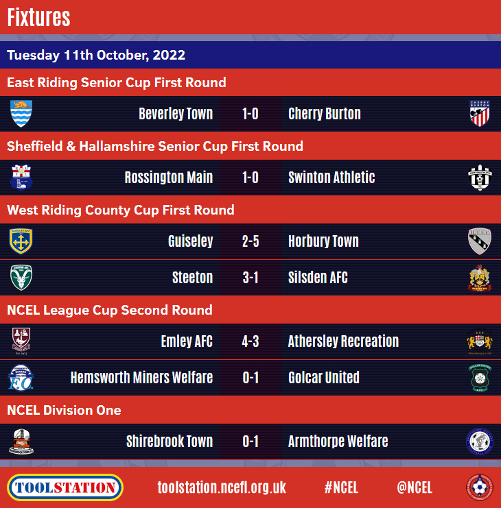 There was a mixture of Toolstation NCEL League Cup, Premier Division, Division One and County Cup matches in midweek with 21 of our sides in action.Four Premier Division teams made it through to the Third Round of the League Cup with