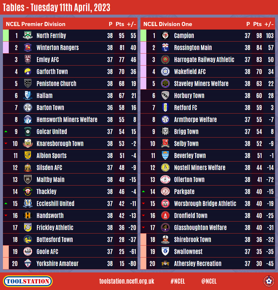 P | 2 | Winterton Rangers | 38 | 81 | 40 |