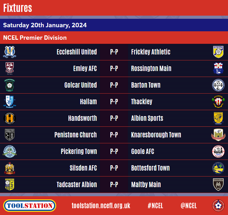 | NCEL Premier Division | P | Pts | +/- | ||