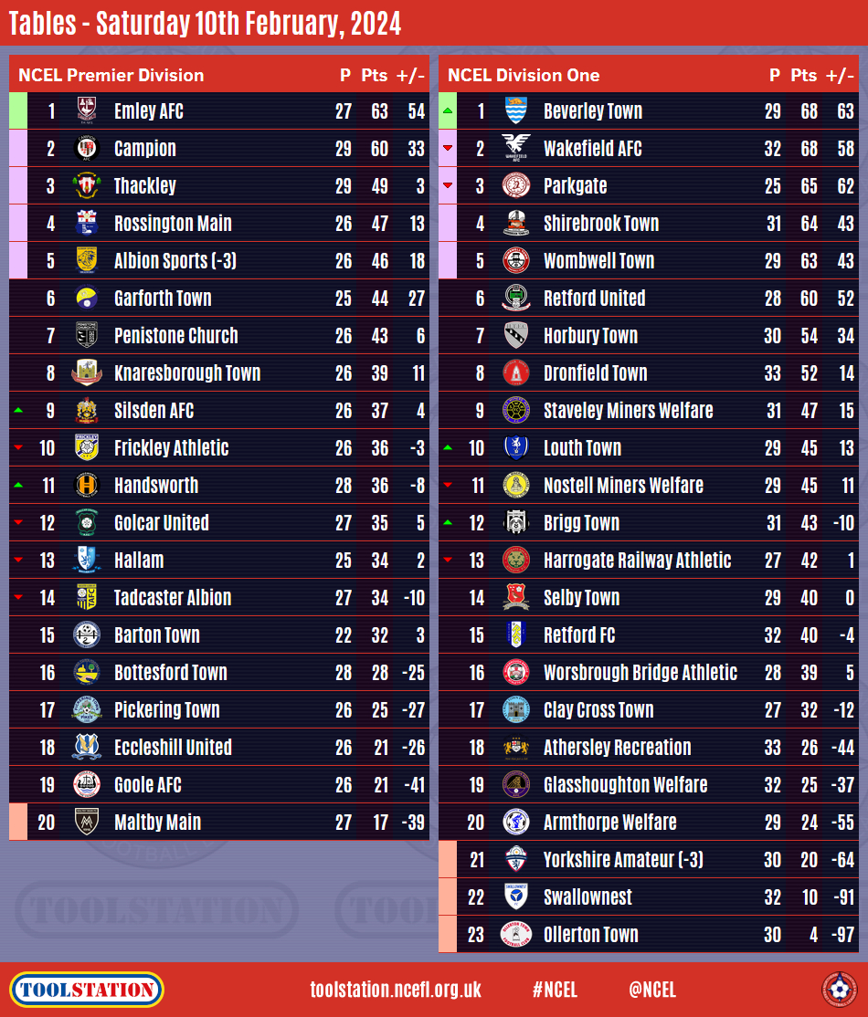 The two other sides in the top five met at the Horsfall Community Stadium with a 1-1 draw leaving hosts