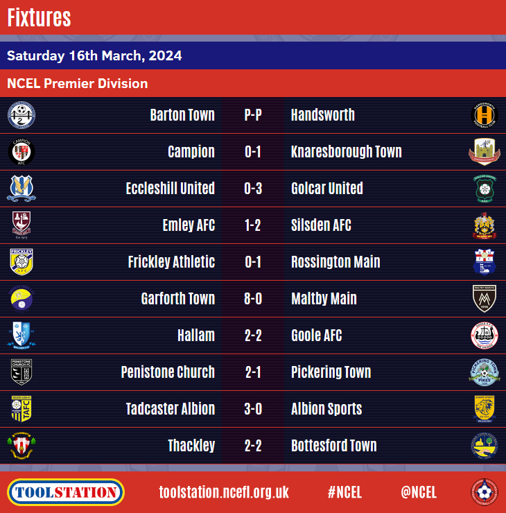 The top two in the Premier Division both fell to home defeats whilst Shirebrook Town returned to the summit in Division One in another enthralling Saturday afternoon of Toolstation NCEL action.Emley AFC remain six points ahead of second-placed