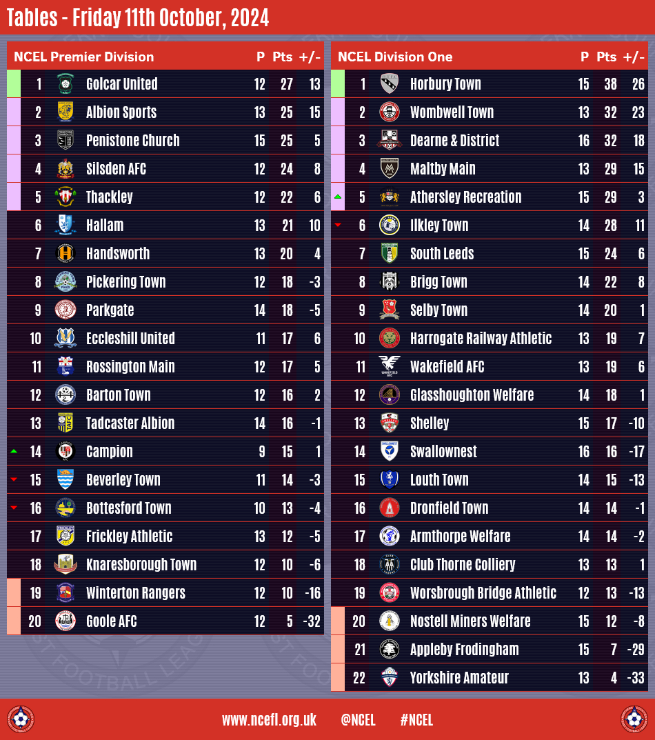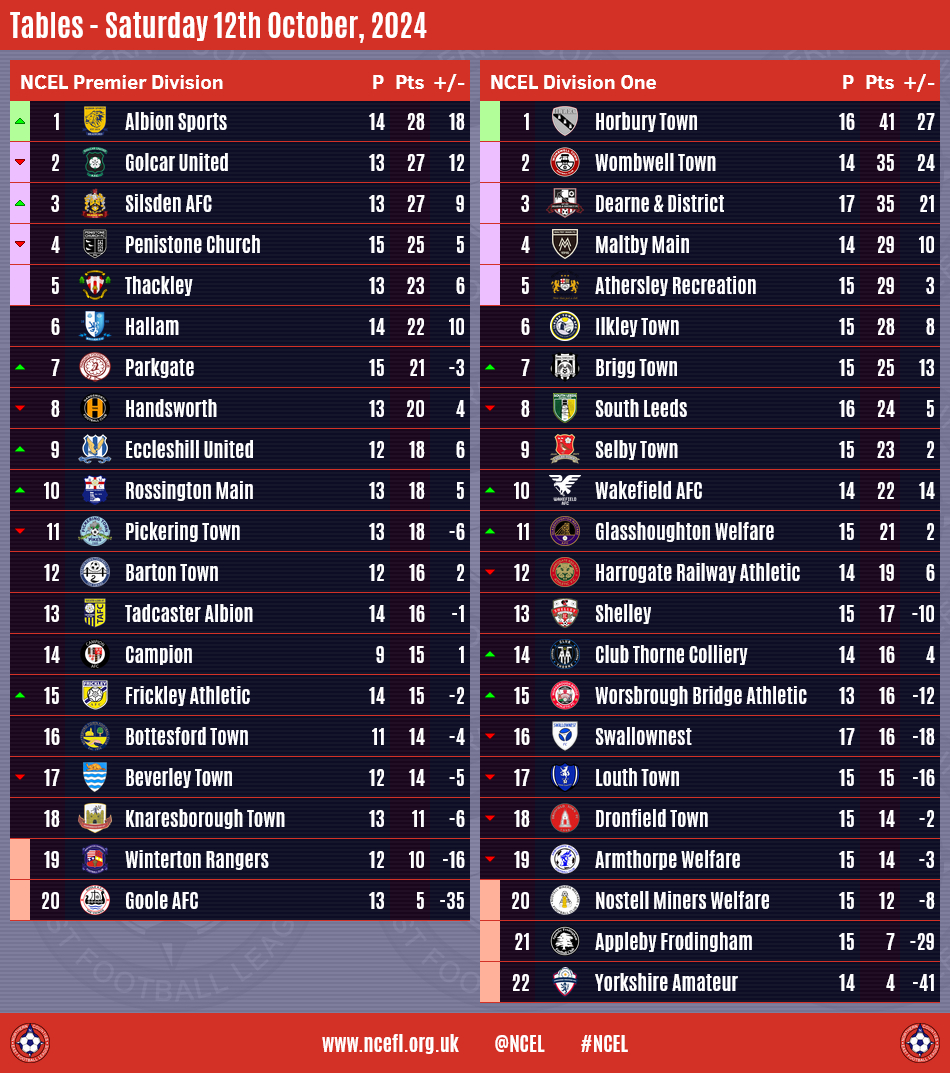 Dearne & District stay second and third, respectively, with a six point gap between themselves and fourth-placed