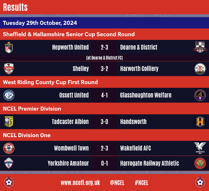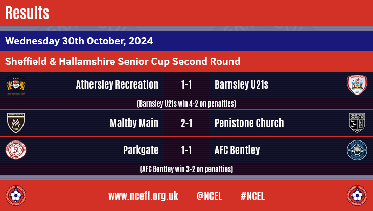 The rest of the midweek action revolved around the county cups with five ties involving NCEL sides in the Second Round of the Sheffield & Hallamshire Senior Cup.