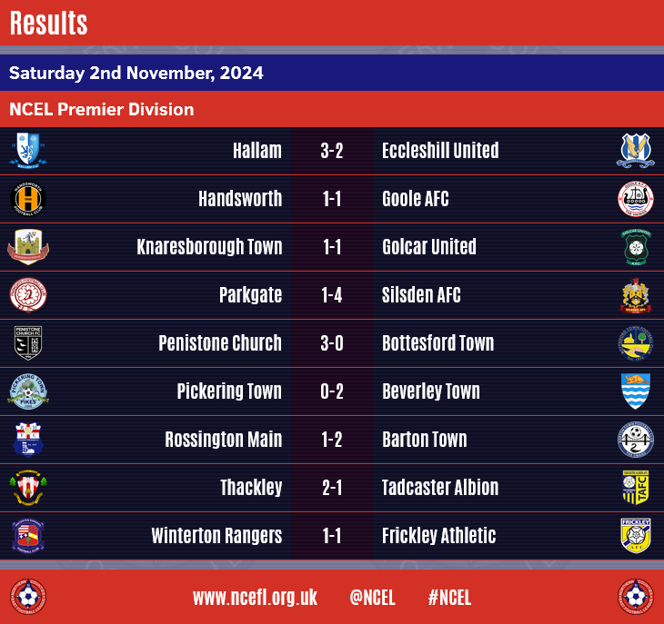 Parkgate were the only side in the top half of the table to taste defeat and drop to tenth, whilst Silsden's advantage at the summit has grown to five points.