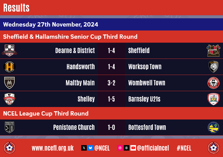 Jack Maeer netted for Nostell as they went down 2-1 to Stocksbridge Park Steels, Jake Phillis was the scorer for Dearne in their 4-1 defeat to Sheffield, and Scott Ruthven brought Handsworth level with Worksop Town but the Ambers were also beaten 4-1.