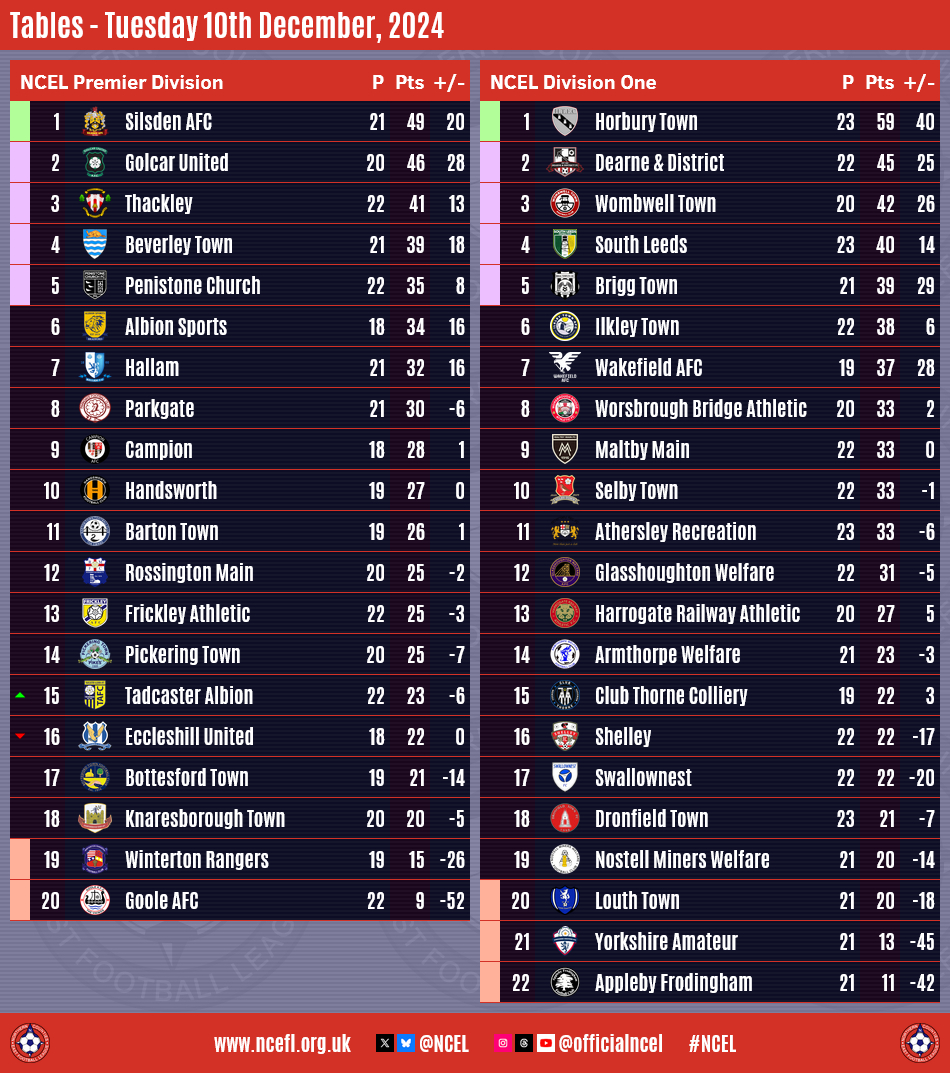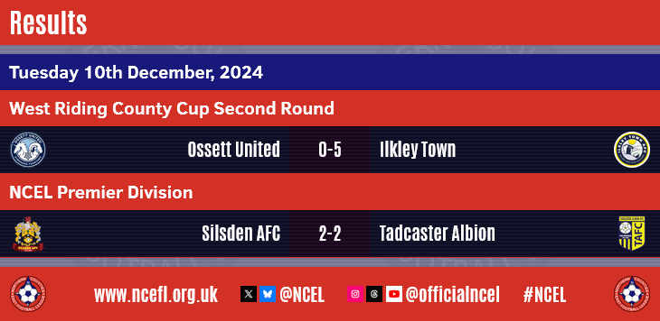 Meanwhile, there were two games in the NCEL Premier Division as table-toppers Silsden were held to a 2-2 draw by visitors