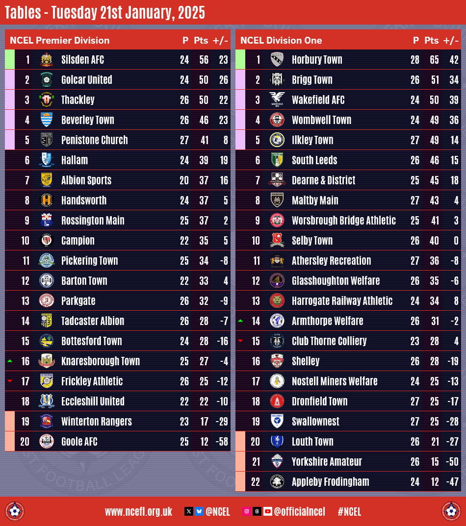 Knaresborough climb to seventeenth whilst Sports remain in seventh, four points away from the top five.