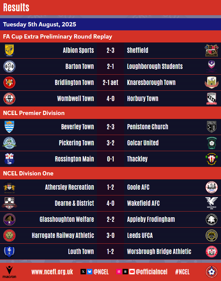 Three more Macron NCEL sides have made it through to the next round of this season's Emirates FA Cup after winning replays in midweek whilst there was also plenty of action in the Premier Division and Division One.Sheffield and