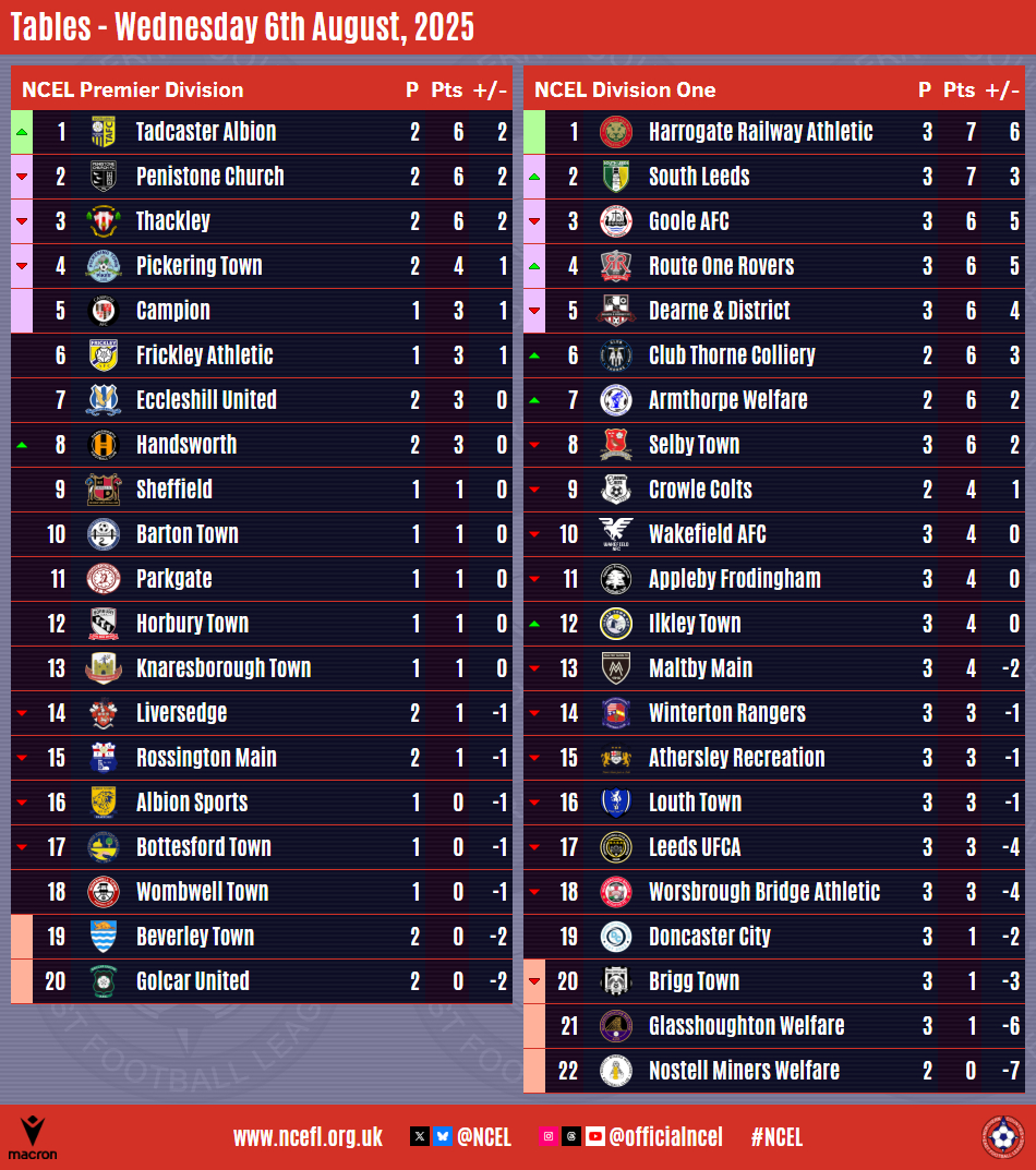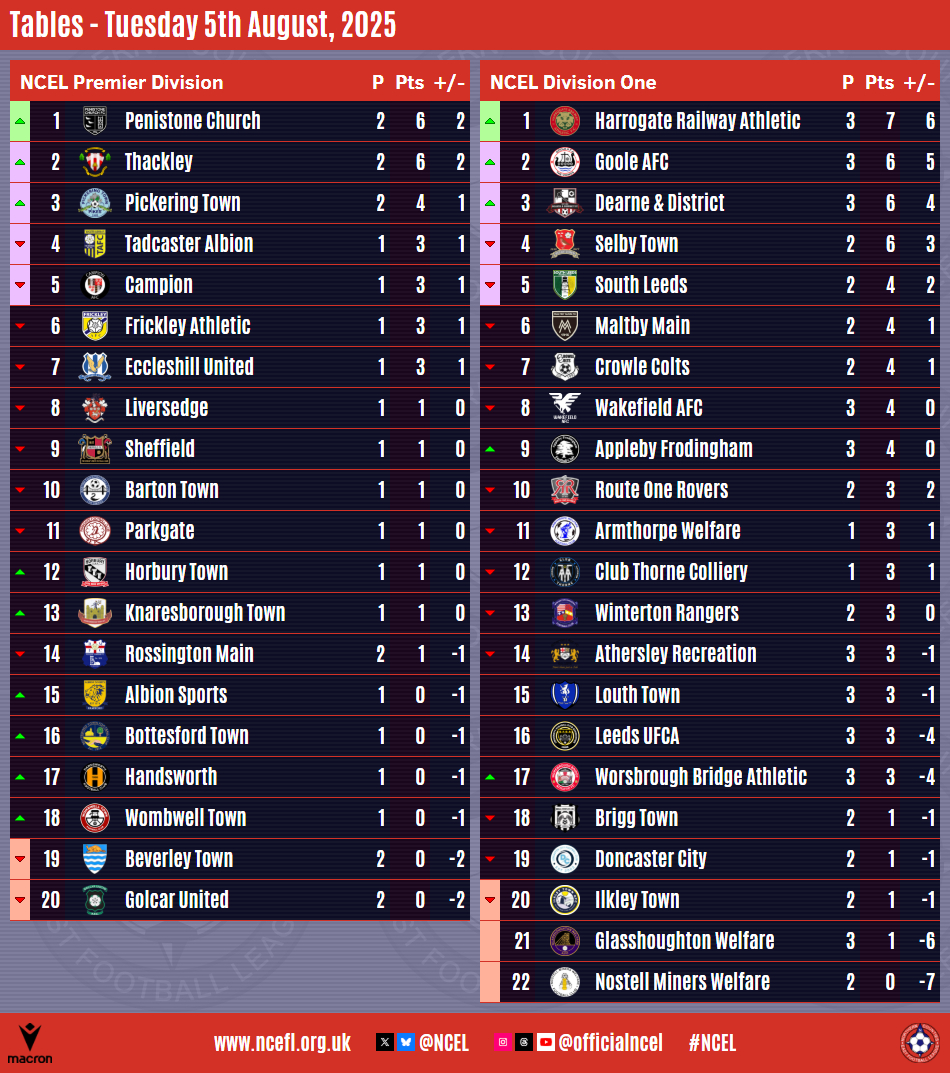 Harrogate Railway Athletic are the early leaders of Division One after Alex Burton, Harry Lynn and Harris Eggleston got on the scoresheet in a 3-0 home win over
