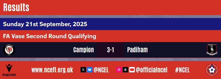 It was Second Round Qualifying in the Isuzu FA Vase at the weekend with 22 ties taking place involving Macron NCEL sides on the long Road to Wembley - and, as to be expected, there was a mixture of joy and disappointment for our clubs.In one of five matches that saw two of our teams square off against each other,