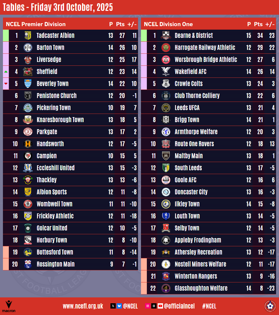 Thackley means they fall to ninth whilst their opponents keep themselves in thirteenth spot.