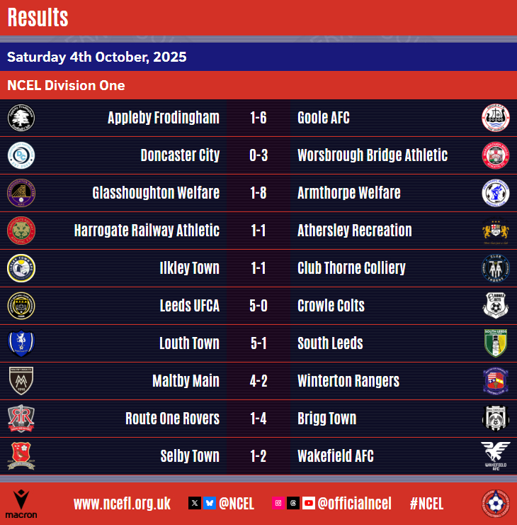 South Leeds 5-1, Harley Thompson and Will Pennell with two each for the White Wolves.