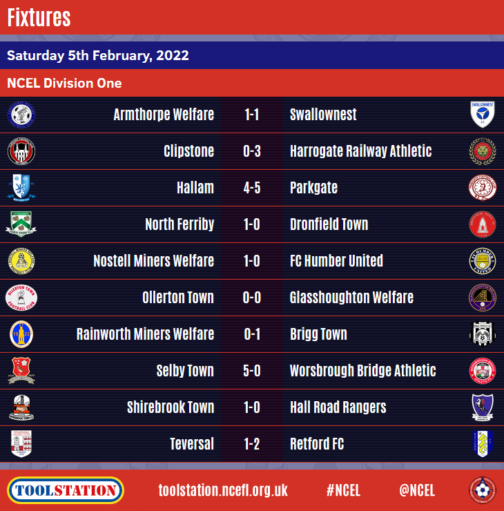 Worsbrough Bridge Athletic 5-0, Liam Flanagan with a hat-trick, and Retford won 2-1 at basement side