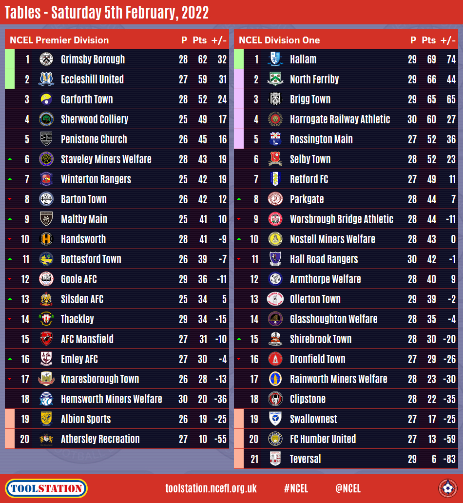 There were twists in both of the Toolstation NCEL Premier Division and Division One title races on a cold, wet and blustery Saturday afternoon.Grimsby Borough and