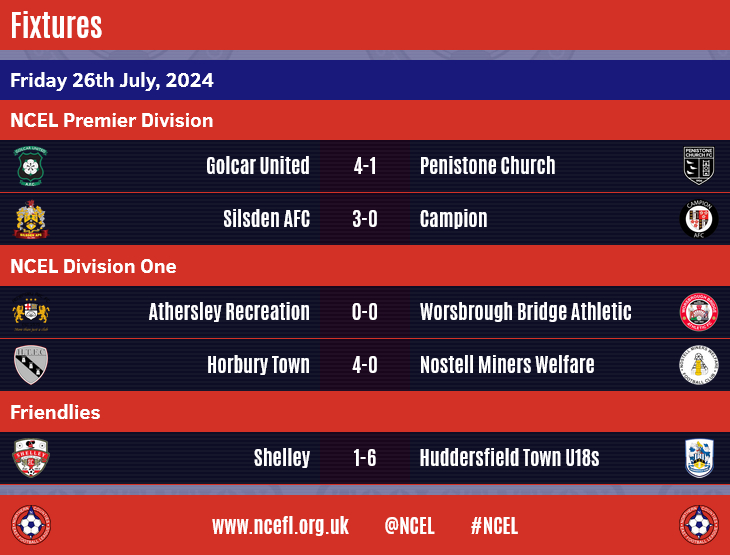 Golcar United, Silsden AFC and Horbury Town enjoyed comfortable home victories as the 2024/25 NCEL season got underway on Friday night.Alfie Wilkinson's opener was added to by a Daniel Naidole penalty, a Ryan Hall strike and an own goal as Golcar beat visitors