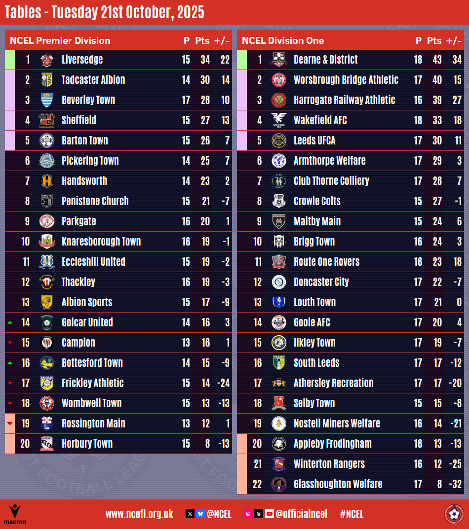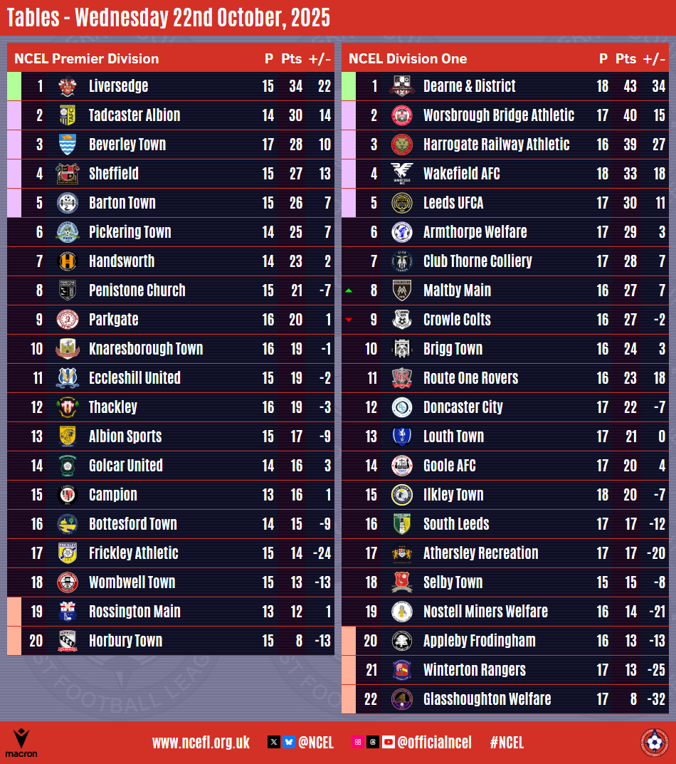 The defeat for Rossington, meanwhile, drops them into the bottom two as
