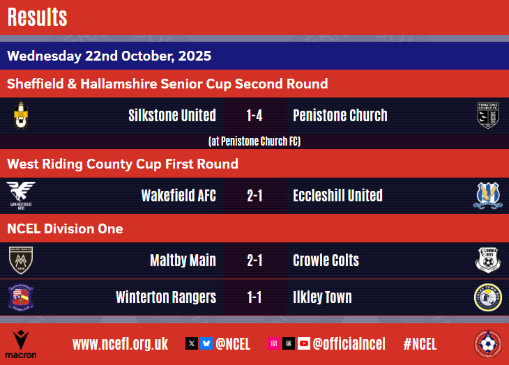 And, there were three all-NCEL ties in the First Round of the West Riding County Cup with