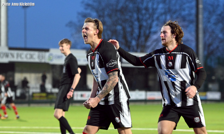 Photo: Jack Varley celebrates scoring Brigg Town's second goal in their 2-1 home win over Worsbrough Bridge Athletic in Saturday's top-five Macron NCEL Division One clash. (Picture: Anna Bäckström)