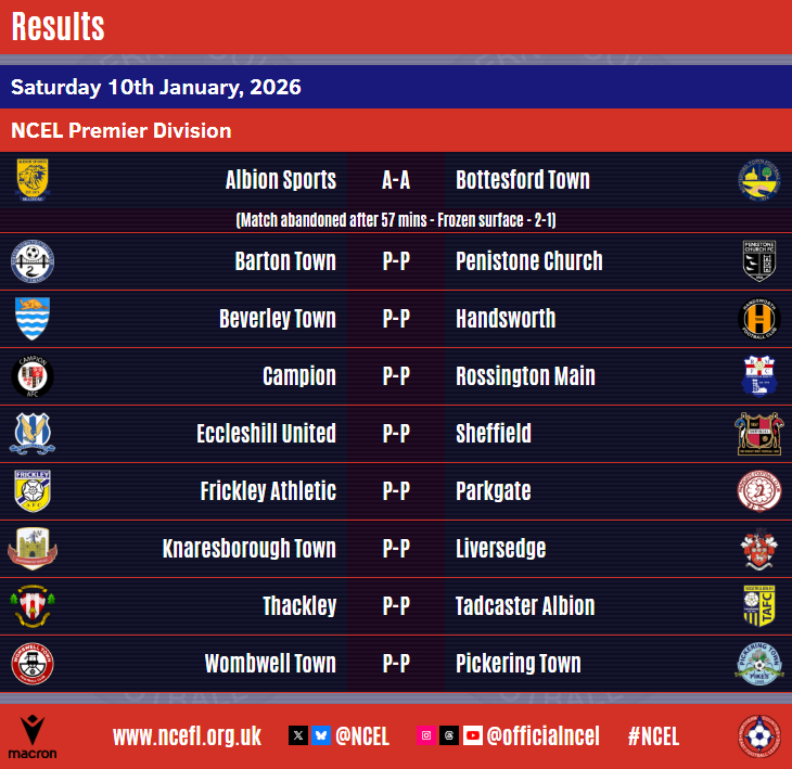 For the second successive weekend, bad weather decimated the Macron NCEL fixtures list with only three matches played to a conclusion on a freezing Saturday afternoon.Albion Sports' home clash with