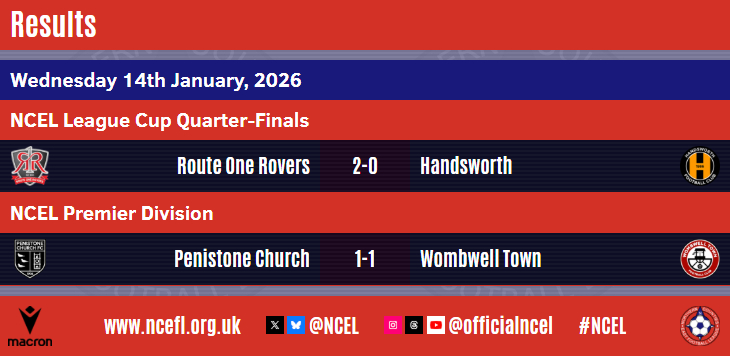 Route One Rovers are the first side through to this season's Semi-Finals of the JCP Construction NCEL Cup in memory of James Hitchcock after their 2-0 home win over Handsworth in midweek.Zak Khan struck twice to take his season's tally to 49, the first a tenth minute penalty that was added to in the last quarter-of-an-hour to seal a win for the Division One hosts at the expense of their Premier Division opponents.