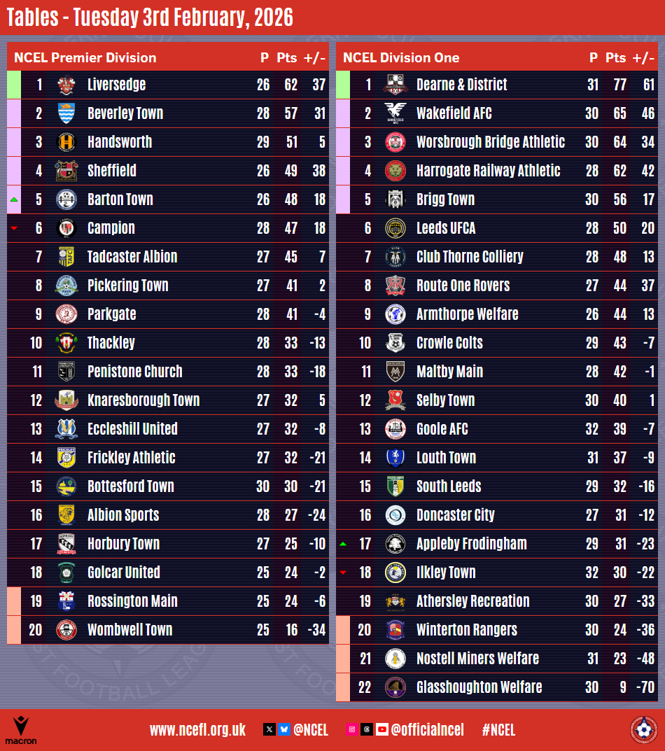 In the Macron NCEL Premier Division,