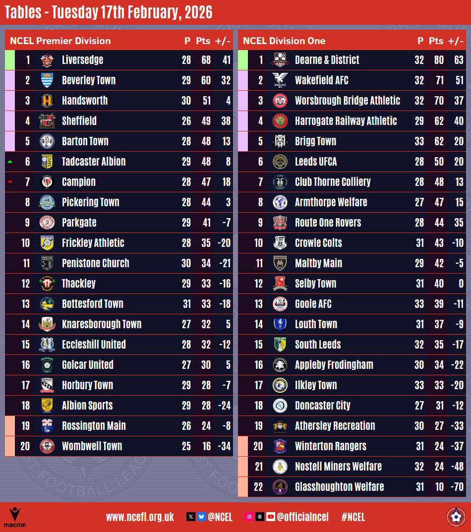 Campion's 5-0 home win over basement side Wombwell Town has seen them leap up into the Macron NCEL Premier Division play-off zone whilst Tadcaster Albion also boosted their chances with a midweek victory.Jack Normanton struck twice whilst there was one each from Patrick Sykes, Sonny Whittingham and Ewan Gregson as Campion claimed a comfortable three points over their visitors who were reduced to ten men following the dismissal of Edward Agnew.