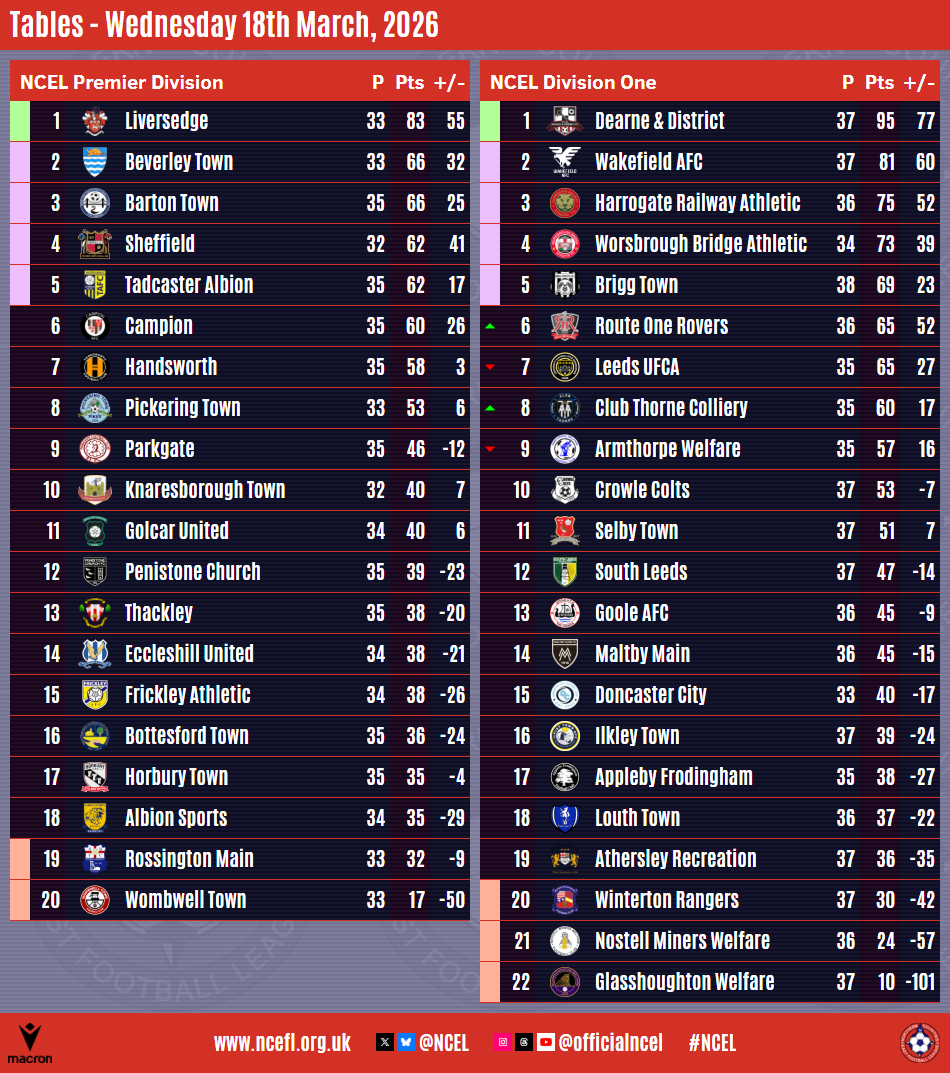 Club Thorne Colliery remain in the hunt too, a 2-1 win at