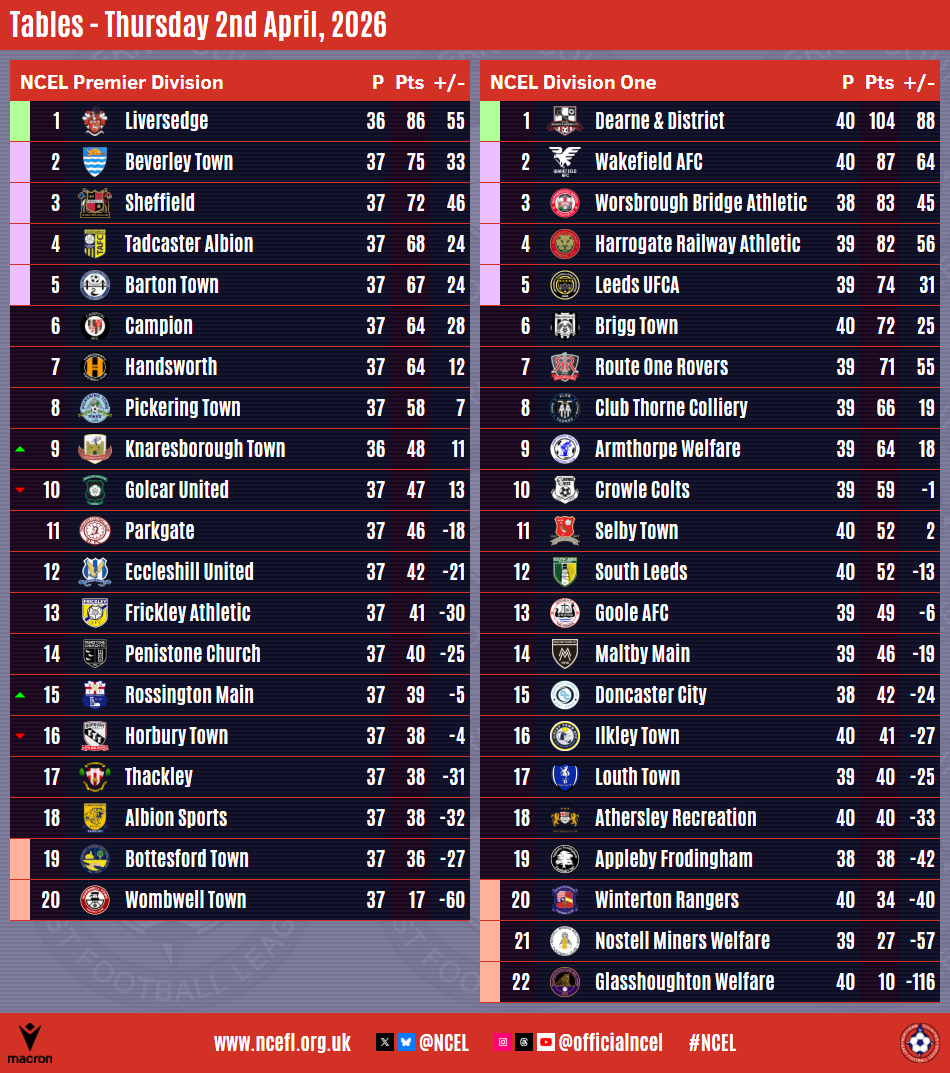 Five sides will go into their final round of matches on Saturday looking to avoid ending the Macron NCEL campaign in the Premier Division relegation zone after midweek games eased concerns for some or made the upcoming weekend even more nervous for others.Eccleshill United are safe after a 1-0 win at basement side