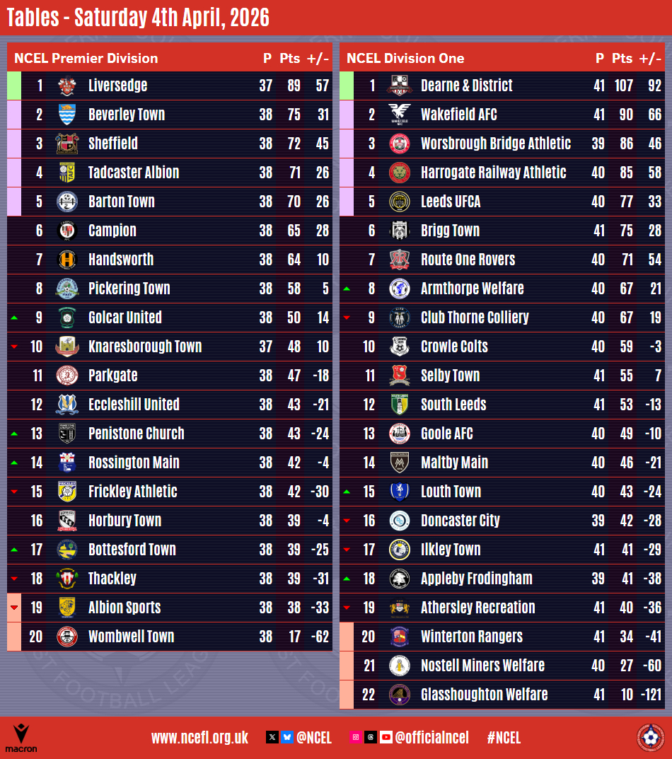 Worsbrough are four points behind with two games in hand whilst