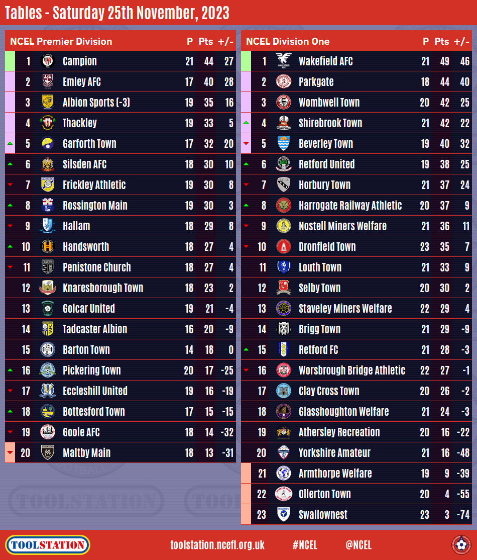 Marcus Day took his season's tally to 24 as his hat-trick helped Toolstation NCEL Premier Division leaders Campion to a 6-2 home victory over Frickley Athletic on Saturday.Nicky Boshell, Joseph Colley and Patrick Sykes also found the net to keep the Red and Blacks four points clear at the summit whilst Zavier Elkin and Luke Walker scored for the visitors who drop to seventh.