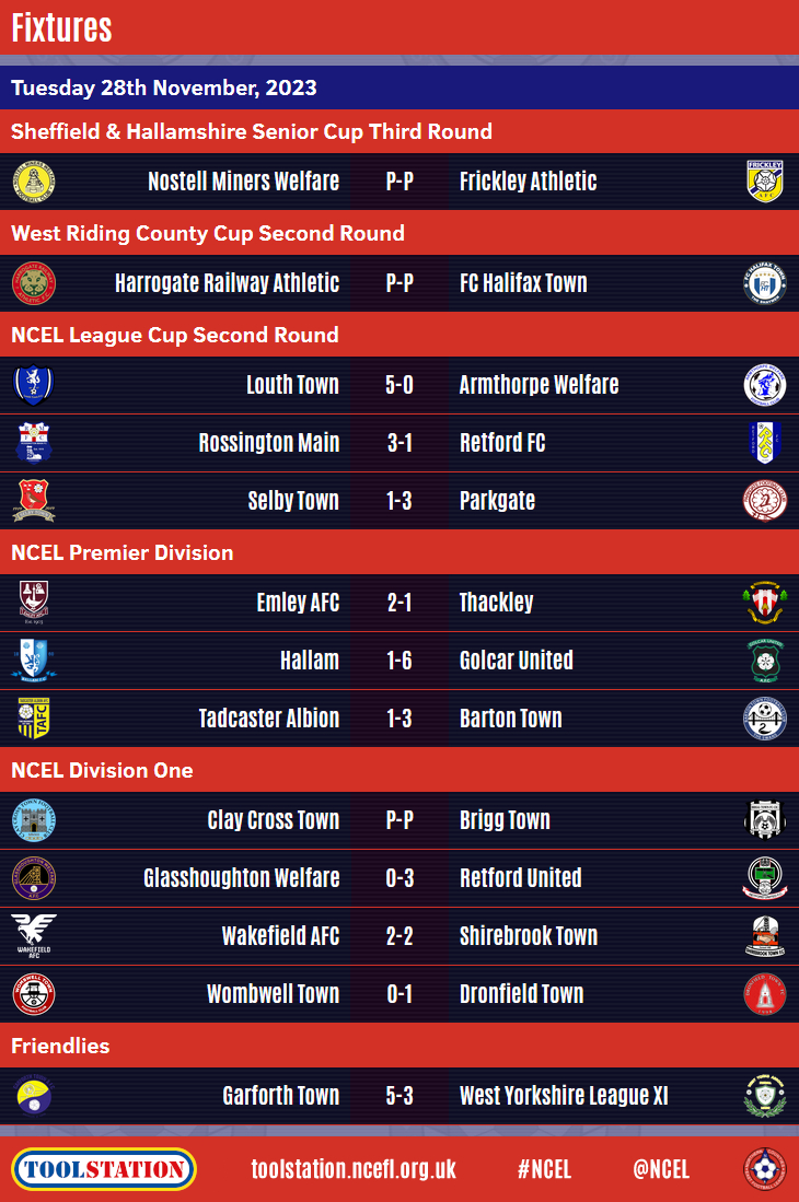 Four more Toolstation NCEL sides have made it through to the Third Round of this season's JCP Construction League Cup following victories in midweek.Louth Town,
