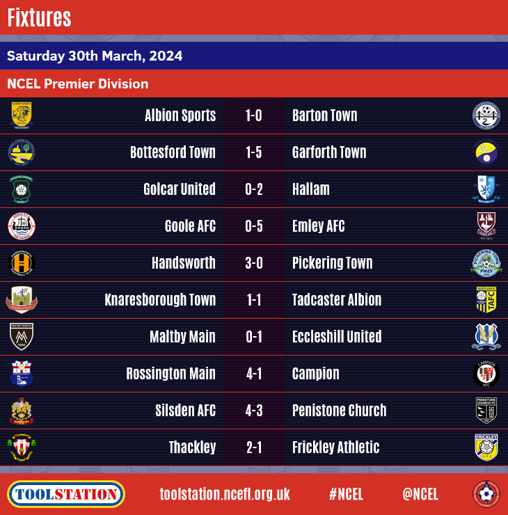 Congratulations to Emley AFC who confirmed the Toolstation NCEL Premier Division title with an emphatic 5-0 victory at Goole AFC on Saturday.Knowing that a win would give them an unassailable lead at the top of the table, the Pewits took a two goal lead in the first half at the Victoria Pleasure Grounds thanks to a Ruben Jerome brace before adding to their tally three times in the final twenty minutes to spark their well-deserved celebrations.